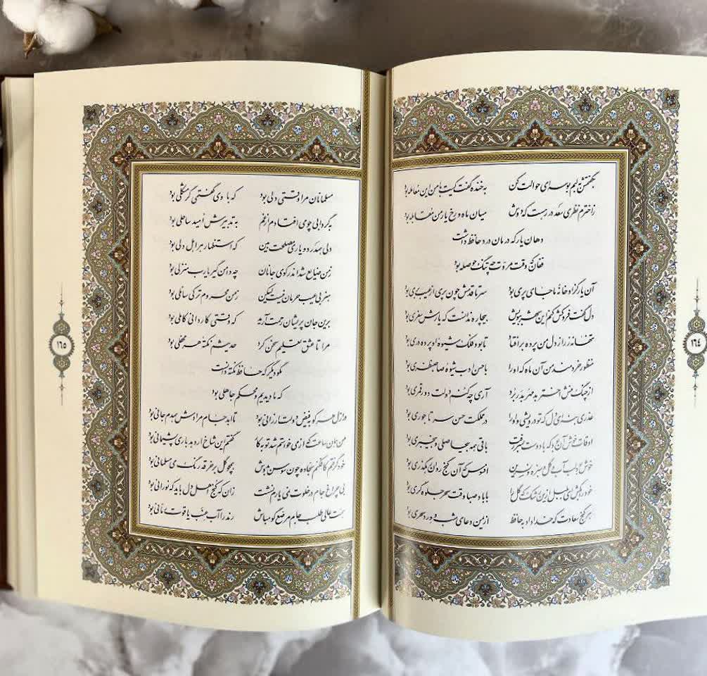 خواندن دیوان حافظ در این نسخه زیبا، تجربهای متفاوت است. وقتی ورقها را لمس میکنید و واژهها را از روی کاغذ گلاسه درخشنده میخوانید، حس نزدیکی بیشتری با روح شعر پیدا میکنید. هر صفحه، همچون پنجرهای به عالم اندیشههای پاک و متعالی حافظ باز میشود؛ جایی که عشق و ایمان در هم میآمیزند و جان را صیقل میدهند.