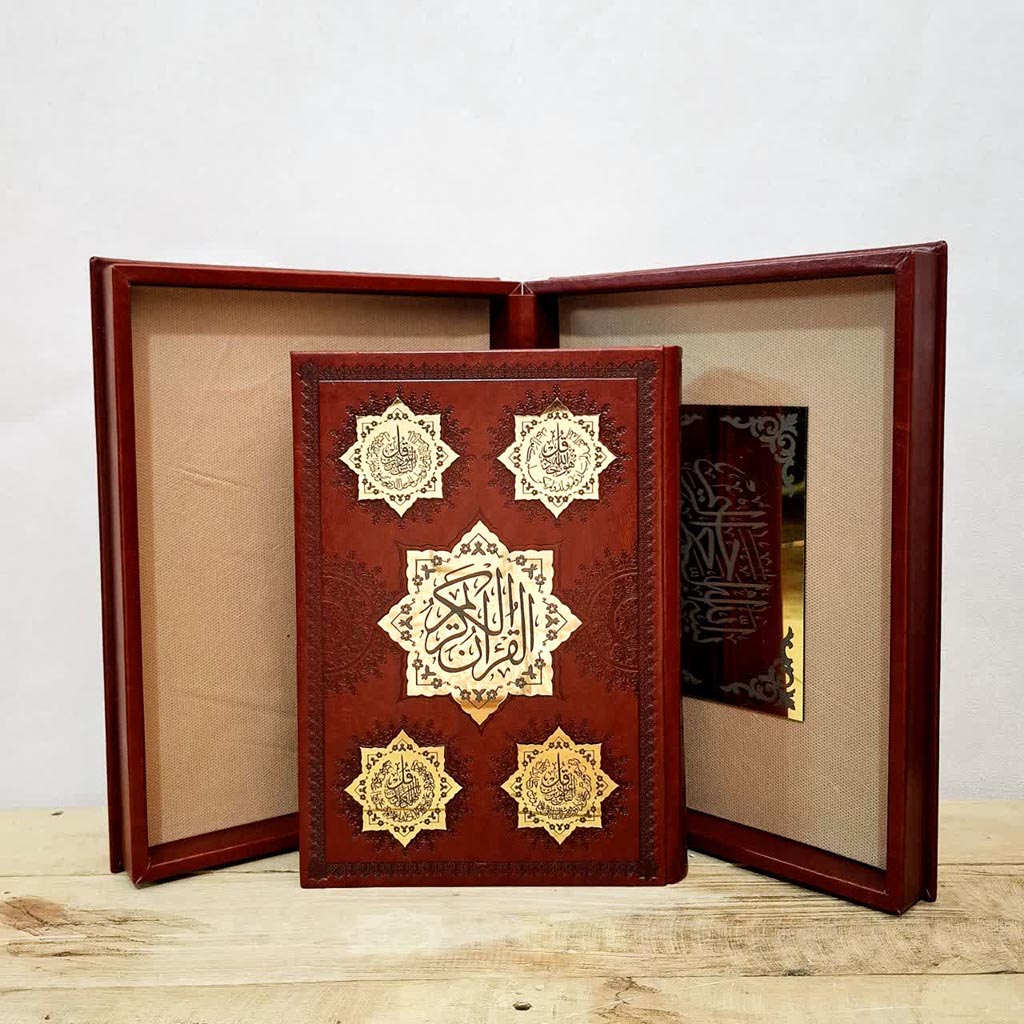قرآن کریم نفیس جعبه لپ تاپی چرم آینه ای پلاک دار